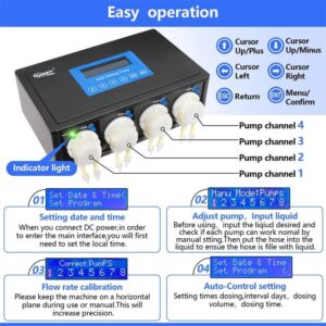 Each pump can be programmed individually, and each channel can provide liquid volume adjustment between 1 and 9999 ml per day. It can be used immediately after calibration with a 100-graduated cylinder. It has an LCD and key buttons, which make it easy to operate.